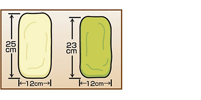 用擀麵棍將5靜置的白麵團擀成 25×12cm的長方形,6的抹茶麵團則擀成23×12cm的長方形。