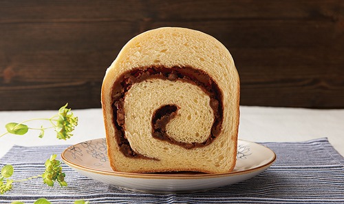 用擀麵棍將麵團擀成35×12cm的長方形,離自己遠處留下約2cm,其餘部份均勻塗上4的紅豆泥。 (塗抹紅豆泥時,周圍請留下約1cm 以避免紅豆泥露出。)