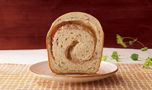 在麵團中捲入大量鬆軟美味的芋泥烘烤而成。 黑芝麻的顆粒口感增添樂趣。