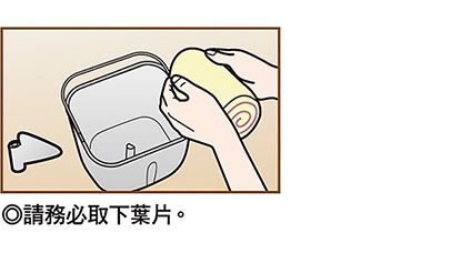 取下麵包容器的葉片,將6的麵團收口朝下放入,再度按下「開始」鍵。