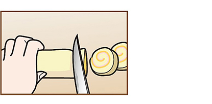 利用手工作業捲入火腿和起司,切開麵包時外觀也美麗。