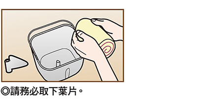 取下麵包容器的葉片,將6的麵團收口朝下放入,再度按下「開始」鍵。