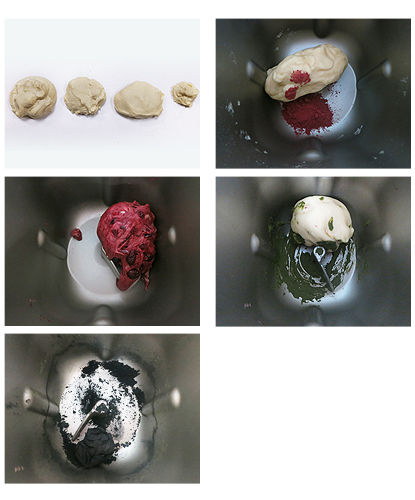 | 將抺茶糊麵團取出,放入最小麵團和竹炭粉 | 揉麵1 | 總計 |