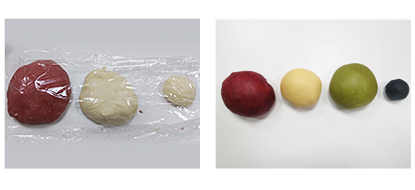 完成後的麵團滾圓並蓋上保鮮膜靜置。待4種麵團完成後開始進行整形。