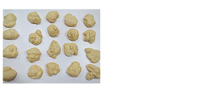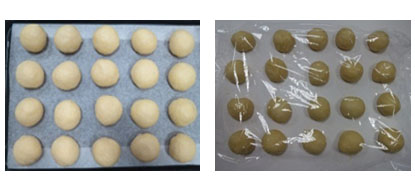 完成的音樂旋律響起後,按下「取消」鍵,從麵包容器取出麵團分成20等份。