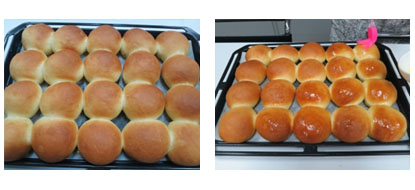 將烤好的麵包取出,在表面塗上融化奶油(修飾用)即可。