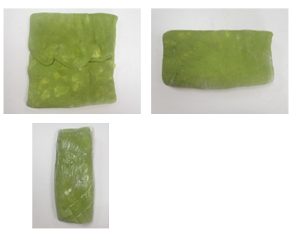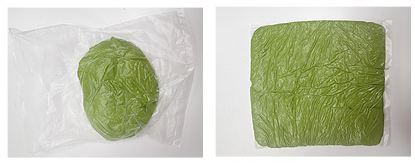 上下往中央對折,再對折,最後用保鮮膜包好放入冰箱冷凍約30分鐘。