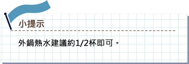外鍋加入熱水,蓋上蓋子,按下開關。
