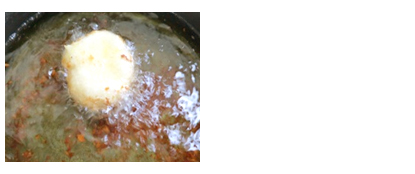 將8放入鍋中以中火加熱後的炸油油炸,偶而翻面直至炸成金黃色即可。