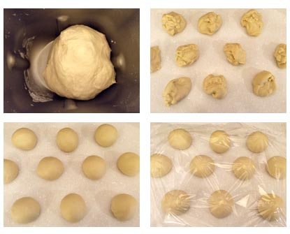 蜂鳴聲響起後,取出麵團,分割成10等份,滾圓後蓋上保鮮膜醒麵15分鐘。