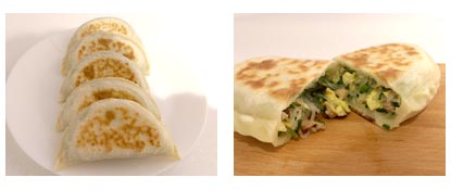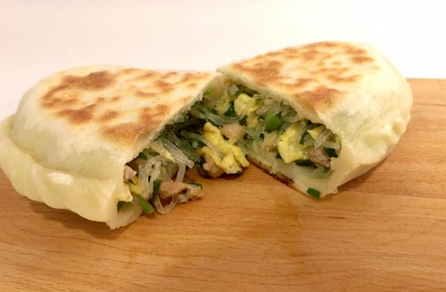 放涼後與蛋鬆、蝦皮、韭菜段拌勻成為內餡備用。