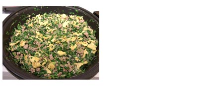放入絞肉炒散,放入調味料C炒香後,加入切段粉絲立刻熄火拌勻備用。