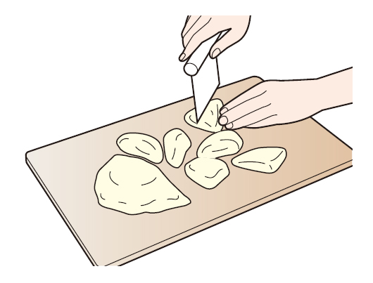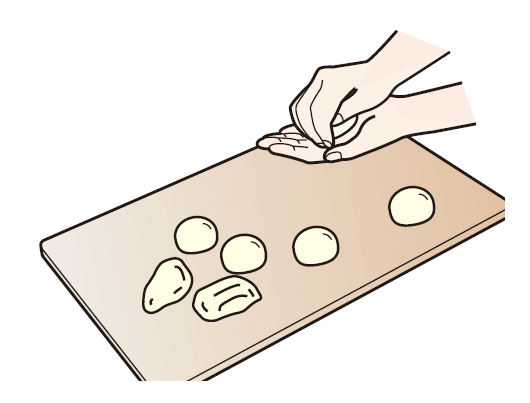 從麵包容器取出麵團,用刮板將麵團分成14等份。(為避免破壞麵團組織結構,請勿用手撕分扯麵團) -