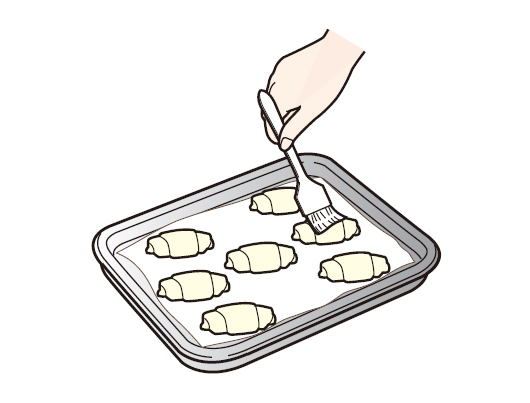 以刷子塗刷修飾用的蛋液在麵團表面,放入已預熱至約180℃的烤箱中烘烤約15分鐘。
