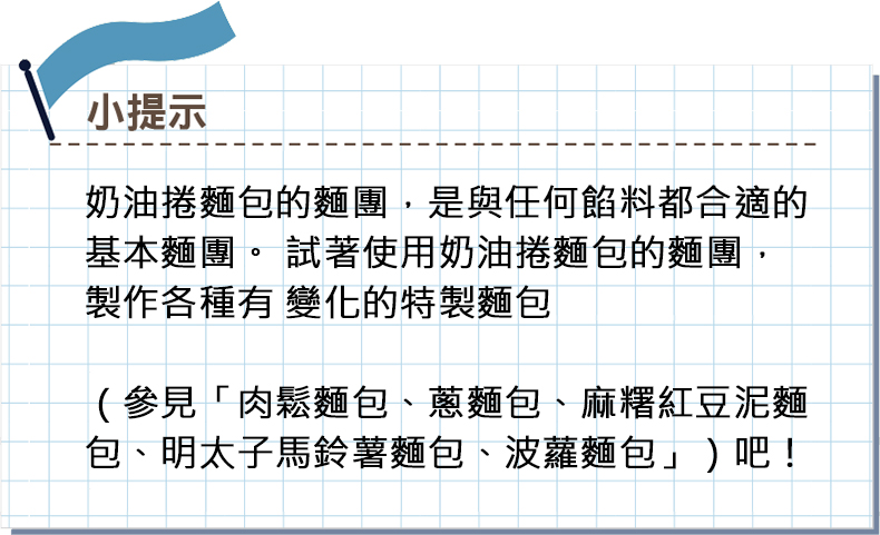奶油捲麵包是特製麵包的基礎,請多加練習直到上手。