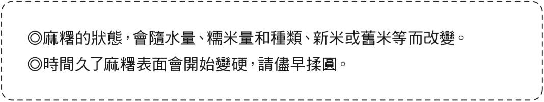 ◎麻糬捏斷成過小的塊狀,不容易揉圓。