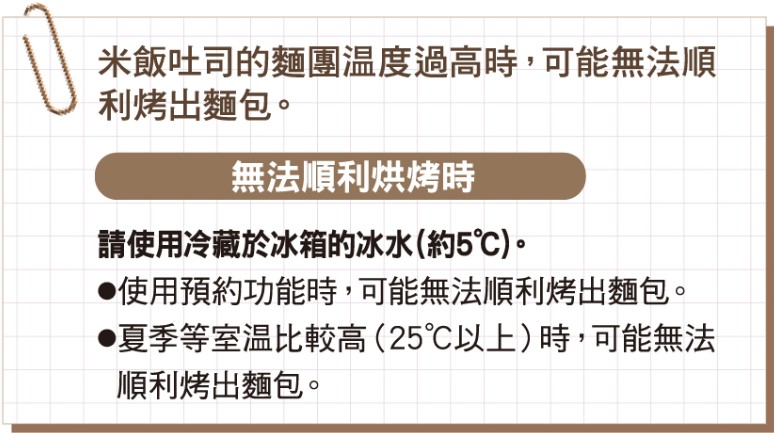◎烘烤完成的米飯吐司,會保有些許米飯顆粒為正常現象。