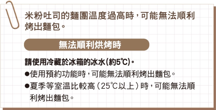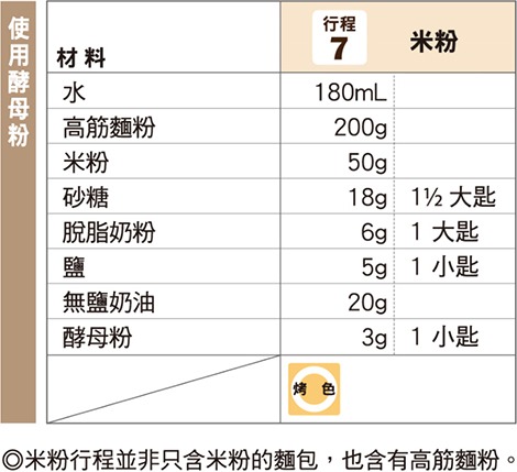 象印食譜»製麵包機食譜»吐司»米粉吐司»米粉吐司 製麵包機食譜 米粉吐司 在高筋麵粉中加入米粉,可使麵包口感變得有彈性。 作法 將材料依材料表由上而下的順序放入麵。 以「行程」鍵選擇行程編號「7」,再按下「開始」鍵。 《 回列表頁