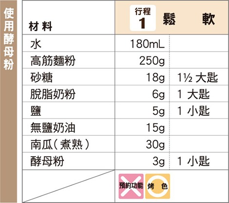 象印食譜»製麵包機食譜»吐司»鬆軟吐司»南瓜吐司 製麵包機食譜 南瓜吐司 南瓜口味的吐司。 具有南瓜本身微微的甜味。 作法 南瓜去皮後切成約1cm厚,放在耐熱容器蓋上保鮮膜,以微波爐 (500W)加熱2~3分鐘。 趁熱利用搗泥器等將1稍微壓碎後冷卻至常温,量取所需份量 (30g)。 將材料依材料表由上而下的順序放入麵包容器。 以「行程」鍵選擇行程編號「1」,再按下「開始」鍵。 《 回列表頁 上一道 下一道