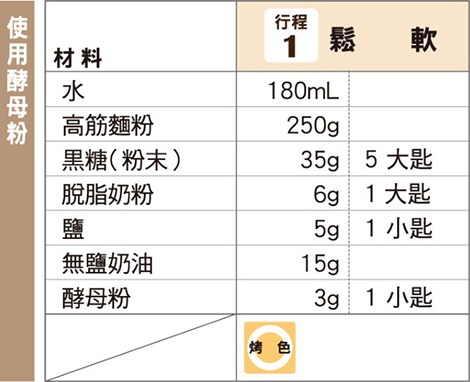 象印食譜»製麵包機食譜»吐司»鬆軟吐司»黑糖吐司 製麵包機食譜 黑糖吐司 含豐富礦物質, 充滿黑糖温和甜味的吐司。 作法 將材料依材料表由上而下的順 序放入麵包容器。 以「行程」鍵選擇行程編號 「1」,再按下「開始」鍵。 《 回列表頁 上一道 下一道
