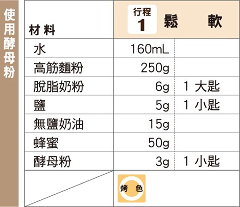象印食譜»製麵包機食譜»吐司»鬆軟吐司»蜂蜜吐司 製麵包機食譜 蜂蜜吐司 使用蜂蜜取代砂糖, 甜味在口中愈嚼愈擴散。 作法 將材料依材料表由上而下的順 序放入麵包容器。 以「行程」鍵選擇行程編號 「1」,再按下「開始」鍵。 《 回列表頁 上一道 下一道