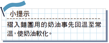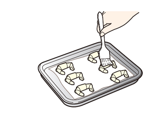 以刷子塗刷修飾用的蛋液在麵團表 面,放入已預熱至190~200℃的烤 箱中烘烤15~20分鐘。