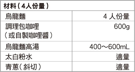 象印食譜»製麵包機食譜»麵團»麵類麵團»咖哩烏龍麵 製麵包機食譜 咖哩烏龍麵 加入高湯的咖哩烏龍麵。 咖哩風味讓人食慾大開。 作法 在鍋中放入調理包的咖哩和烏龍麵 高湯(參見豆皮烏龍麵的材料表),充分拌勻加熱。 在1中加入太白粉水勾芡煮沸。 將煮熟的烏龍麵放入大碗中,淋上2 並擺上青蔥即可。 《 回列表頁 上一道 下一道
